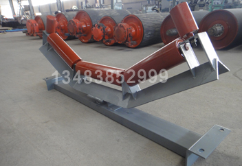 輸送帶在運(yùn)行中出現(xiàn)偏移時(shí),擋輥在輸送帶的邊緣進(jìn)行阻擋保護(hù),然后再傳遞受力進(jìn)行調(diào)整。
